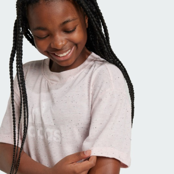 Перемога починається з правильного підходу. Коли ти добре виглядаєш, ти почуваєшся добре. Ця підліткова футболка adidas передає дух переможця завдяки меланжевій тканині та вільному крою, в якому тобі буде комфортно протягом дня. Великий логотип adidas на грудях з ефектом вицвітання завершує образ.Щонайменше 70% цього продукту складається з перероблених і відновлюваних матеріалів.